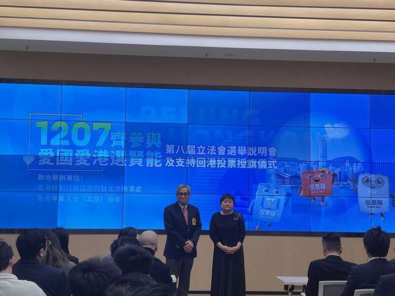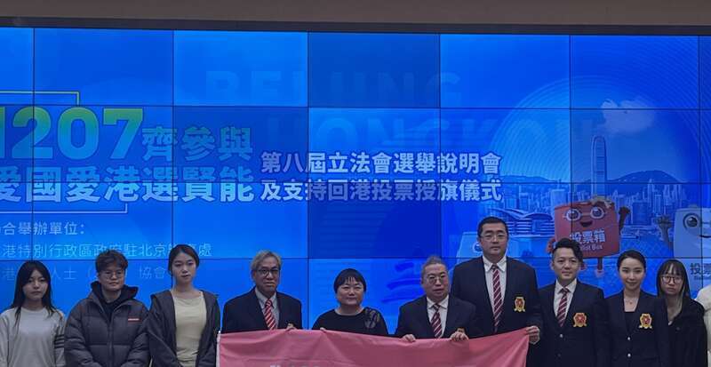 为帮助更多在内地的香港青年了解第八届立法会选举,助力这次选举有序展开,11月15日,香港专业人士(北京)协会联合香港特别行政区政府驻北京办事处(香港驻京办)举办了第八届立法会选举说明会及支持回港投票授旗仪式。